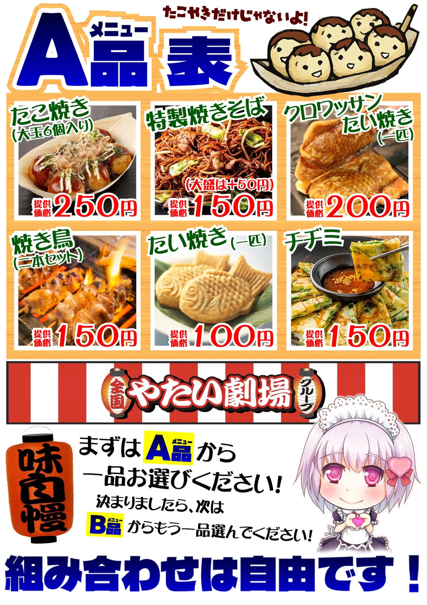 | 商品は、お客様が飽きないように新商品を企画開発して提供していきます。 販売価格が安い為、地域の活性化や町を元気にするプロジェクトとしてもアピールできます! 安くておいしい食べ物は、必ず人から人への口コミで広まり、 一人でも多く御社様のお店への話題性に結びつくように盛り上げてまいります。 |